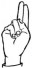 На ћирилици написано ВУКАН РУСИЋ састоји се из 10 слова [?]. Исписано ћириличном једноручном азбуком за глувонеме: